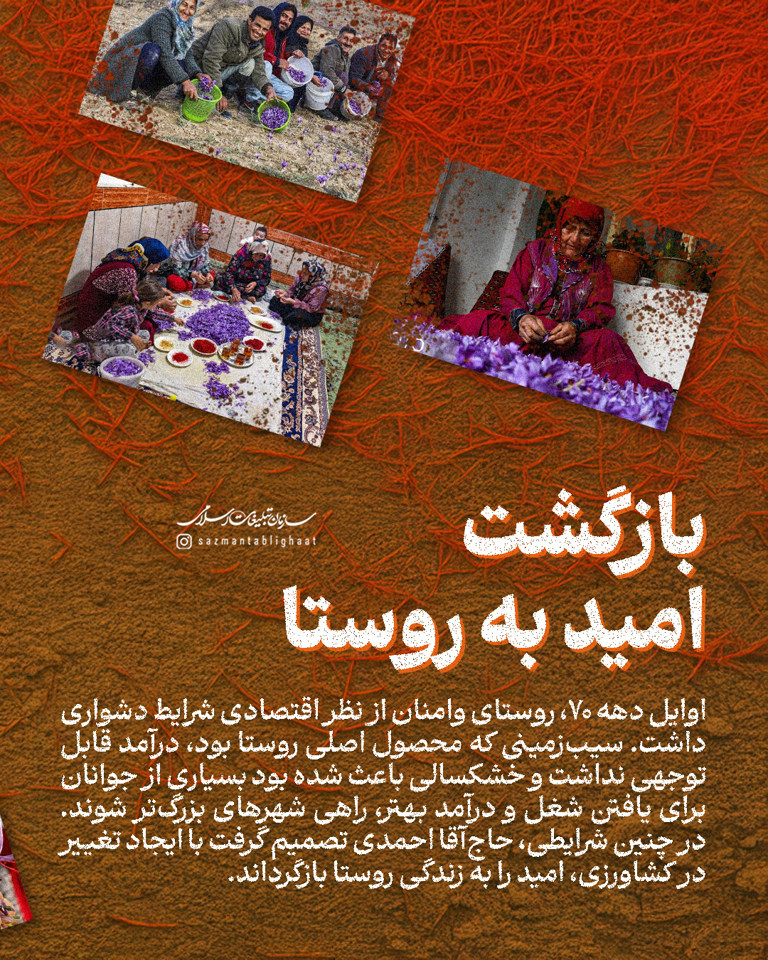 روستای وامنان در استان گلستان امروز به عنوان یکی از مراکز مهم کشت زعفران در ایران و بازارهای بین‌المللی شناخته می‌شود؛ مسیری که با تلاش‌های اهالی وامنان و ابتکار حجت‌الاسلام محمدرضا احمدی، روحانی این روستا شکل گرفت. در این شماره از نشریه دیجیتال مروری می‌کنیم بر ابتکار این روحانی که سازمان فائو را نیز شگفت‌زده کرد.