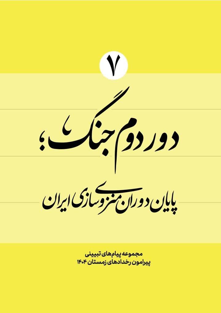 «پایان دوران منزویسازی ایران» هفتمین ویژهنامه «دور دوم جنگ» است که با 14 پیام به بیان پیامهای تبیینی پیرامون رخدادهای اخیر در کشور پرداخته است. در این نسخه از ویژهنامه به پیامهای مختلفی اشاره کرده که عبارتند از: شکست پروژه منزویسازی ایران، نشانه دیگری از پایان جهان تک قطبی است؛ خوانش جهانی از اتفاقات ایران در پیوستاری از جنگ 12 روزه است؛ مردد شدن ترامپ از حمله به ایران محصول شکست پروژه منزویسازی ایران بوده است.