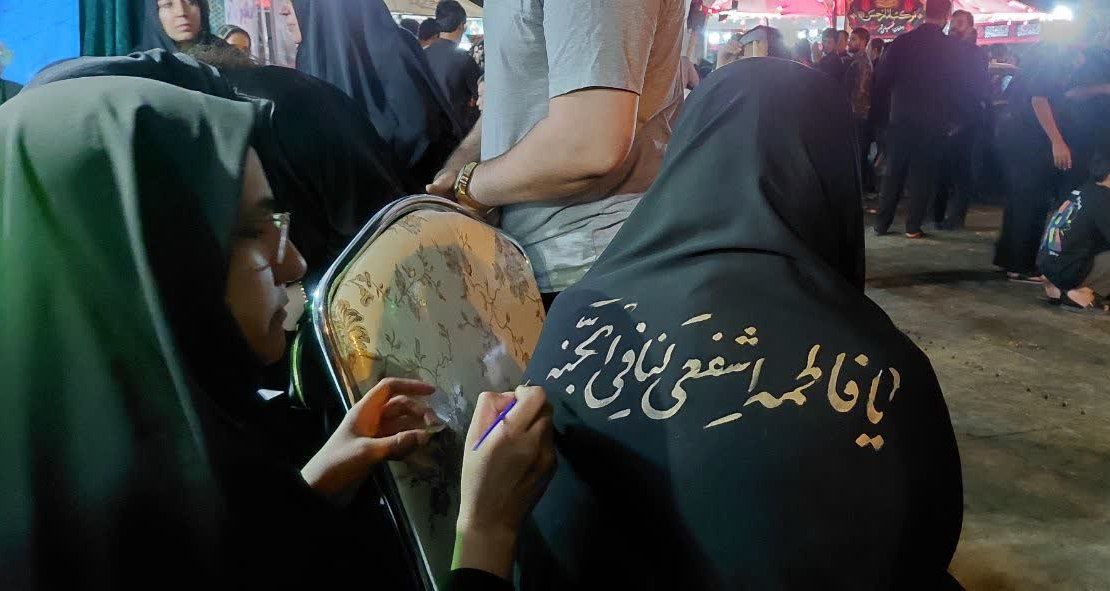 وی ادامه داد: در برنامه خوشنویسی با گل، نام مبارک حضرت معصومه(س) بر روی لباس کودکان و سایر علاقهمندان نقش میبست که با استقبال چشمگیر حاضران روبرو شد.