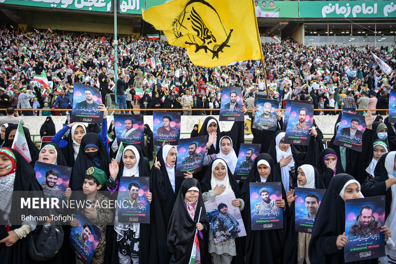 德黑兰自由体育场十万人合唱《萨拉姆,司令》